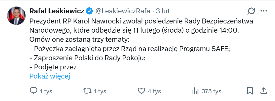 Posiedzenie zwołuje prezydent i to on określa jego tematykę. Pierwsze i ostatnie w trakcie kadencji Karola Nawrockiego odbyło się w we wrześniu, po naruszeniu polskiej przestrzeni powietrznej przez rosyjskie drony.